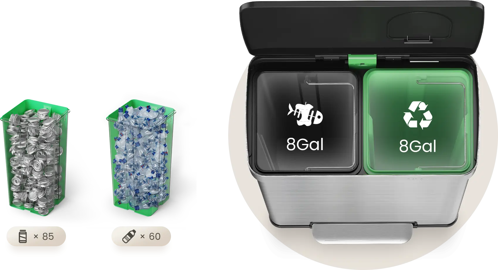 Dual Bins. Push Lid. Smart, Simple, Even Fun